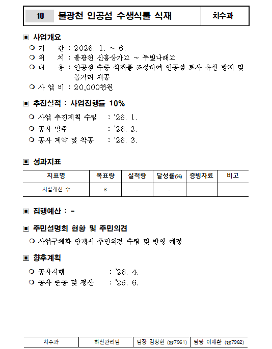 [공원·하천] 2026-10. 불광천 인공섬 수생식물 식재