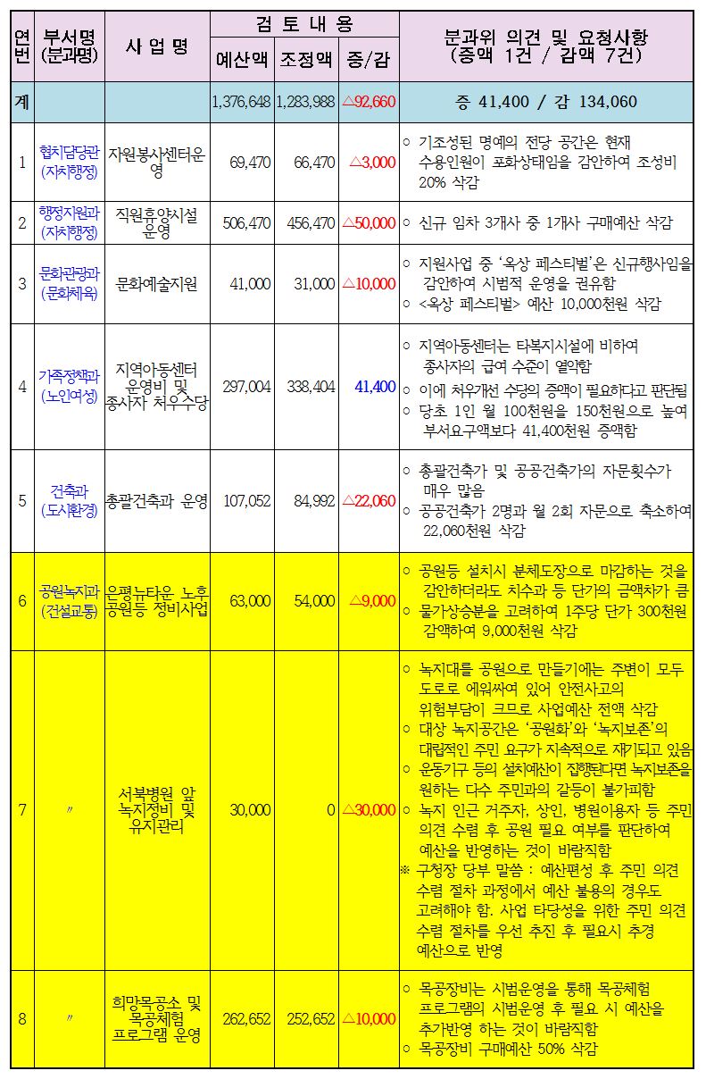 가. 2020. 본예산 편성 참여예산위원회 심의결과
