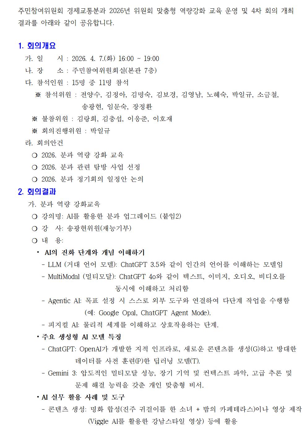 경제교통분과 2026년 4차 회의 개최 결과