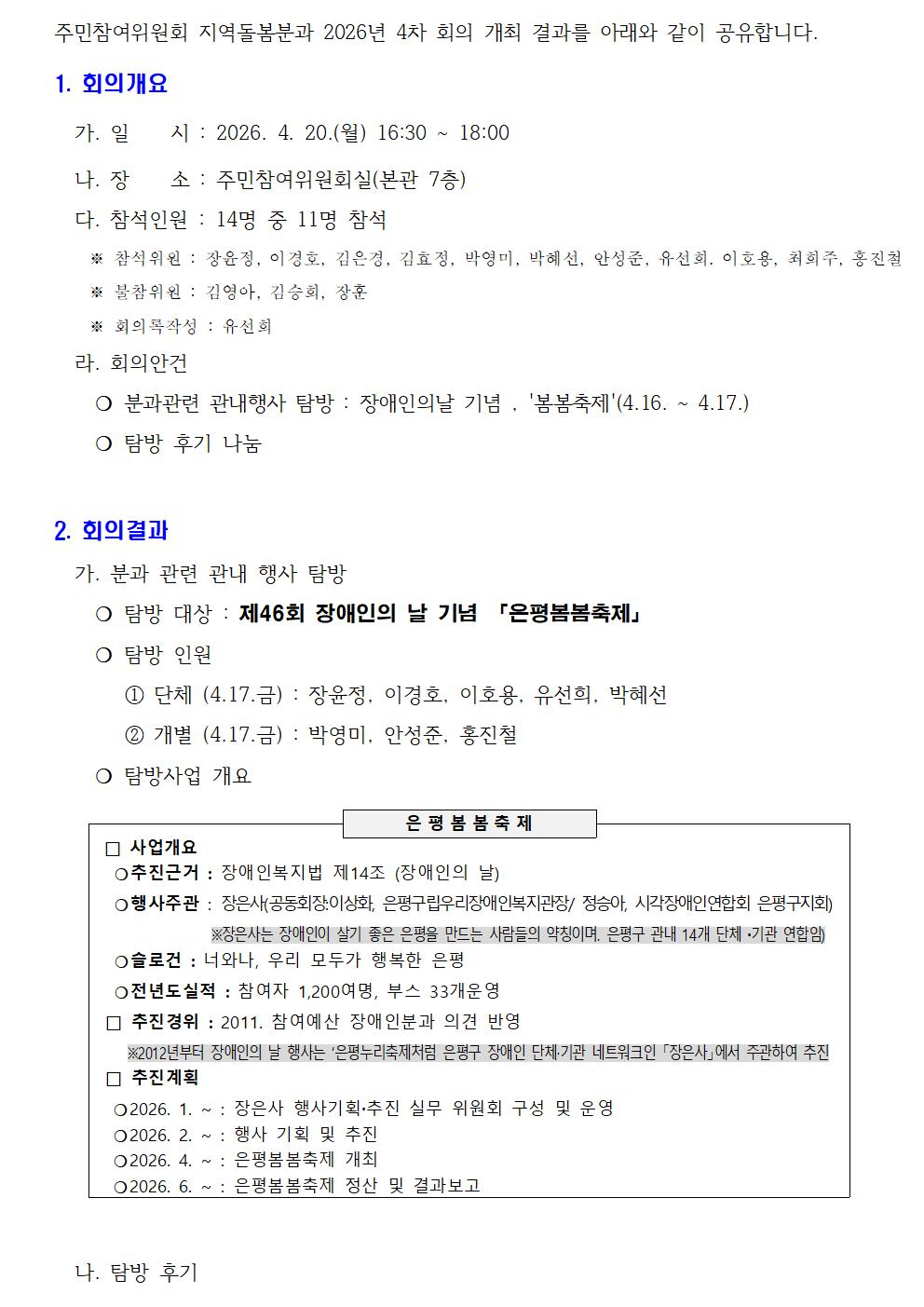 지역돌봄분과 2026년 4차 회의 개최 결과