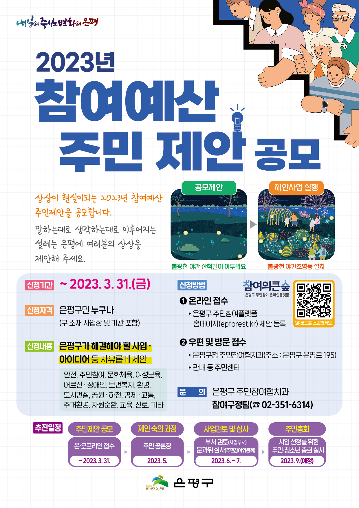 은평구 2024년 참여예산사업 선정을 위한 주민제안을 공모합니다.