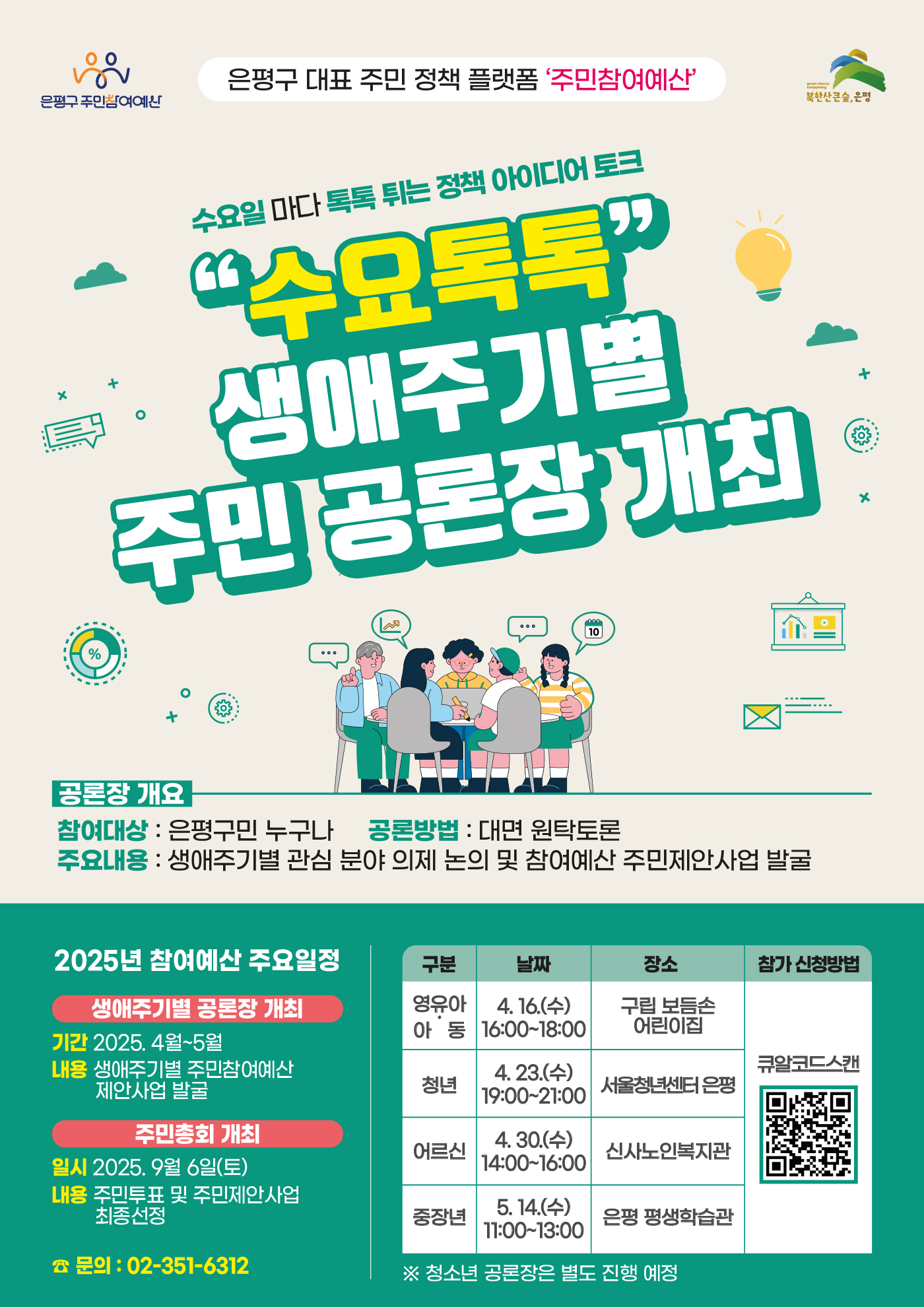 ■ ‘수요톡톡’ 2025년 은평구 참여예산 생애주기별 주민공론장 개최 안내 ■