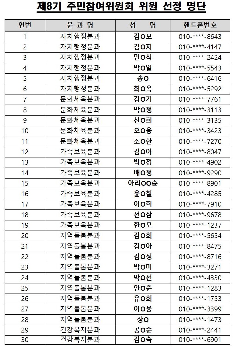 ○ 모집인원 : 신규 60명 ※결원 발생 시 미선정자 중 주민참여학교 이수자 우선충원