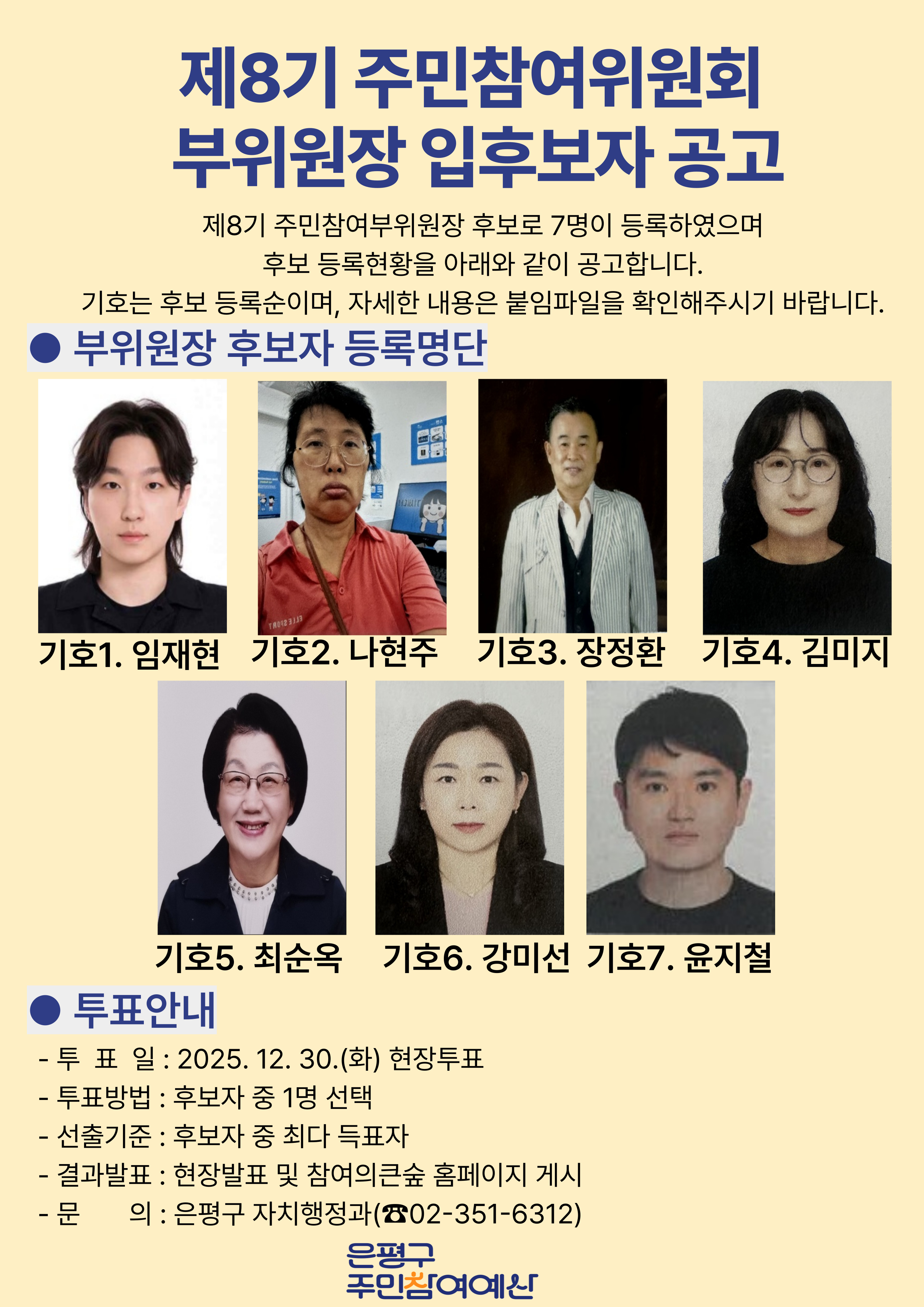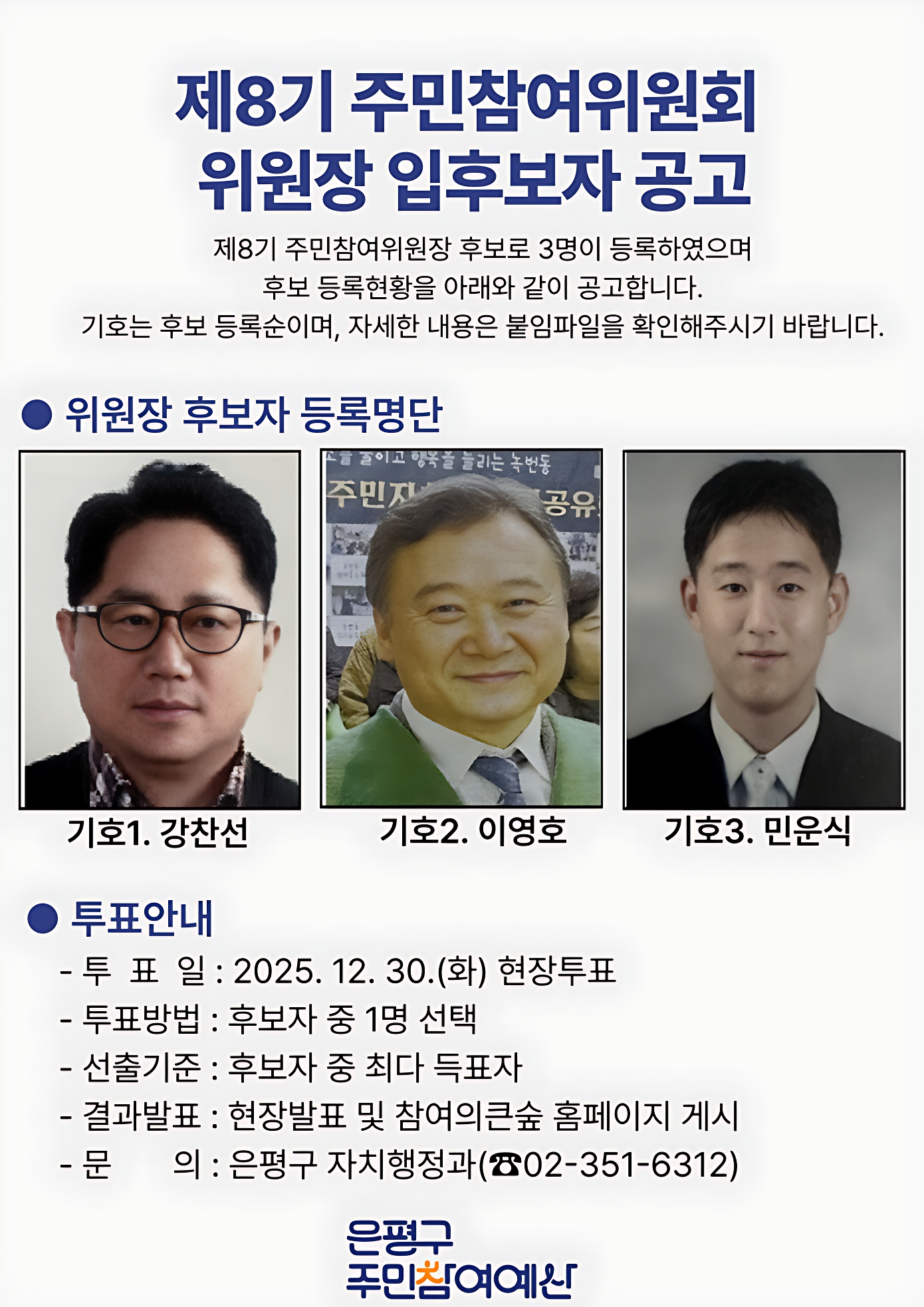 제8기 주민참여위원 임원 입후보자 공고