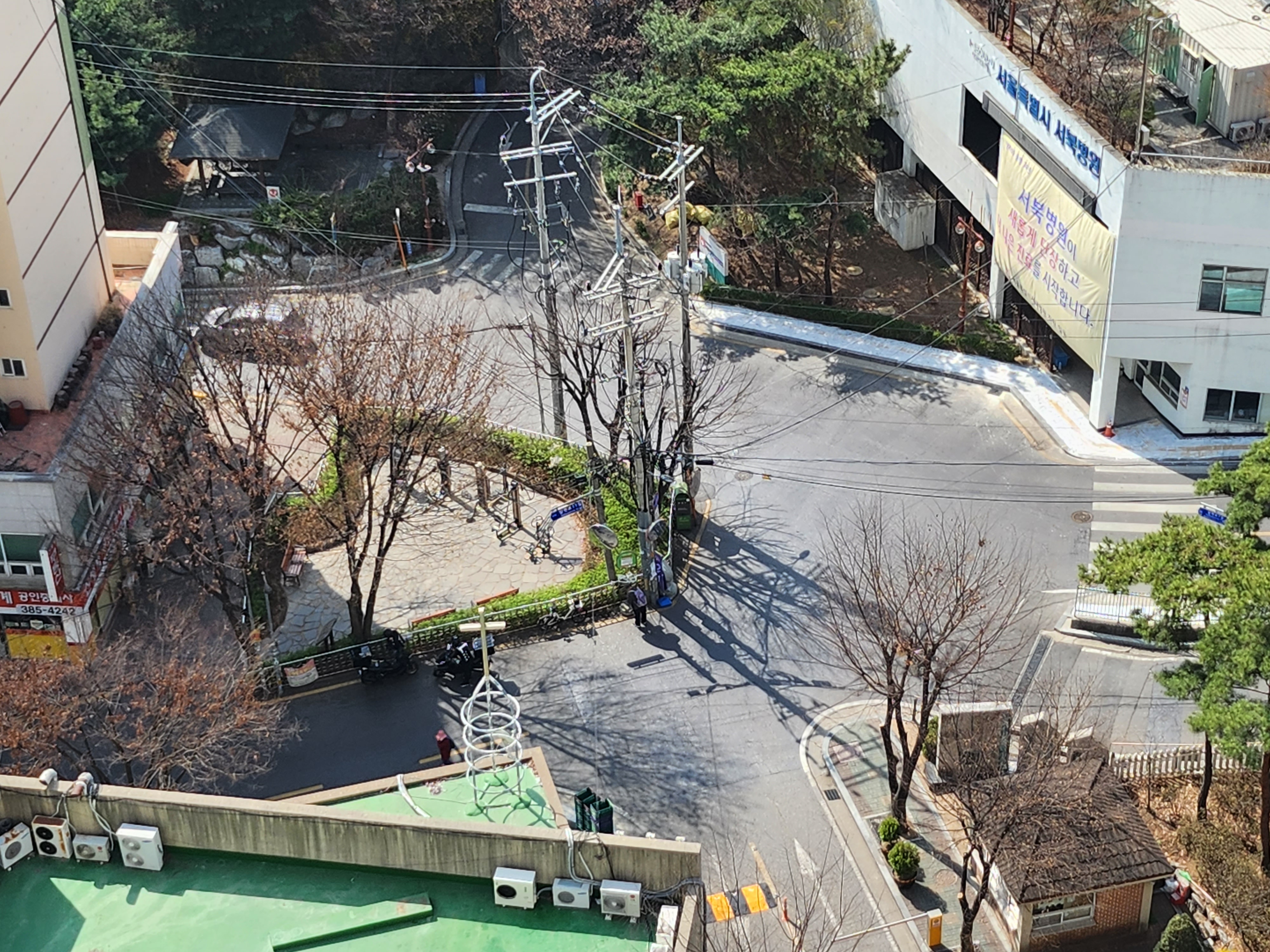 이 곳에 소공원이 위치해 있어 반대편에서 오는 차량이 보이지 않고 불법주정차 하는 차들과 서북병원 셔틀버스 마을버스02번가 지나가다보니 상당히 복잡합니다.