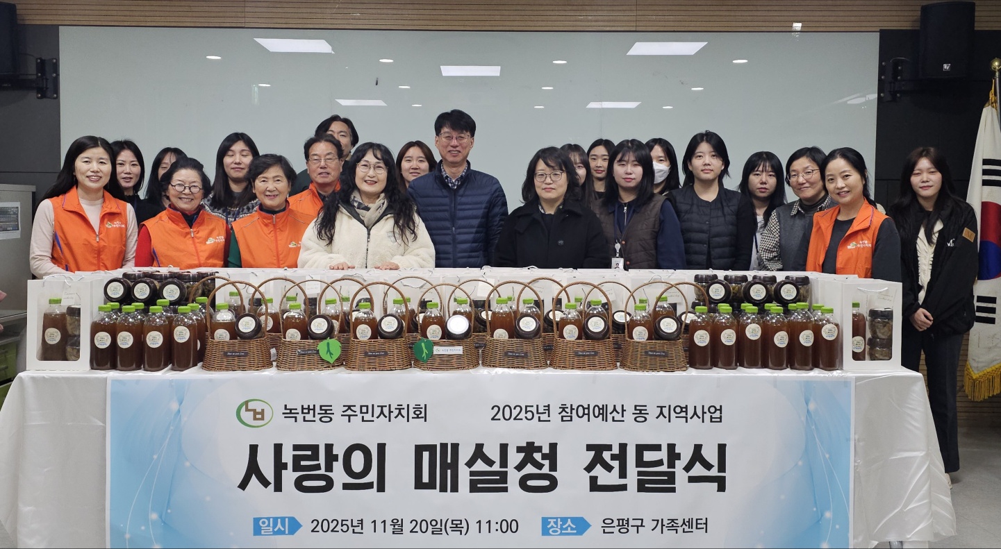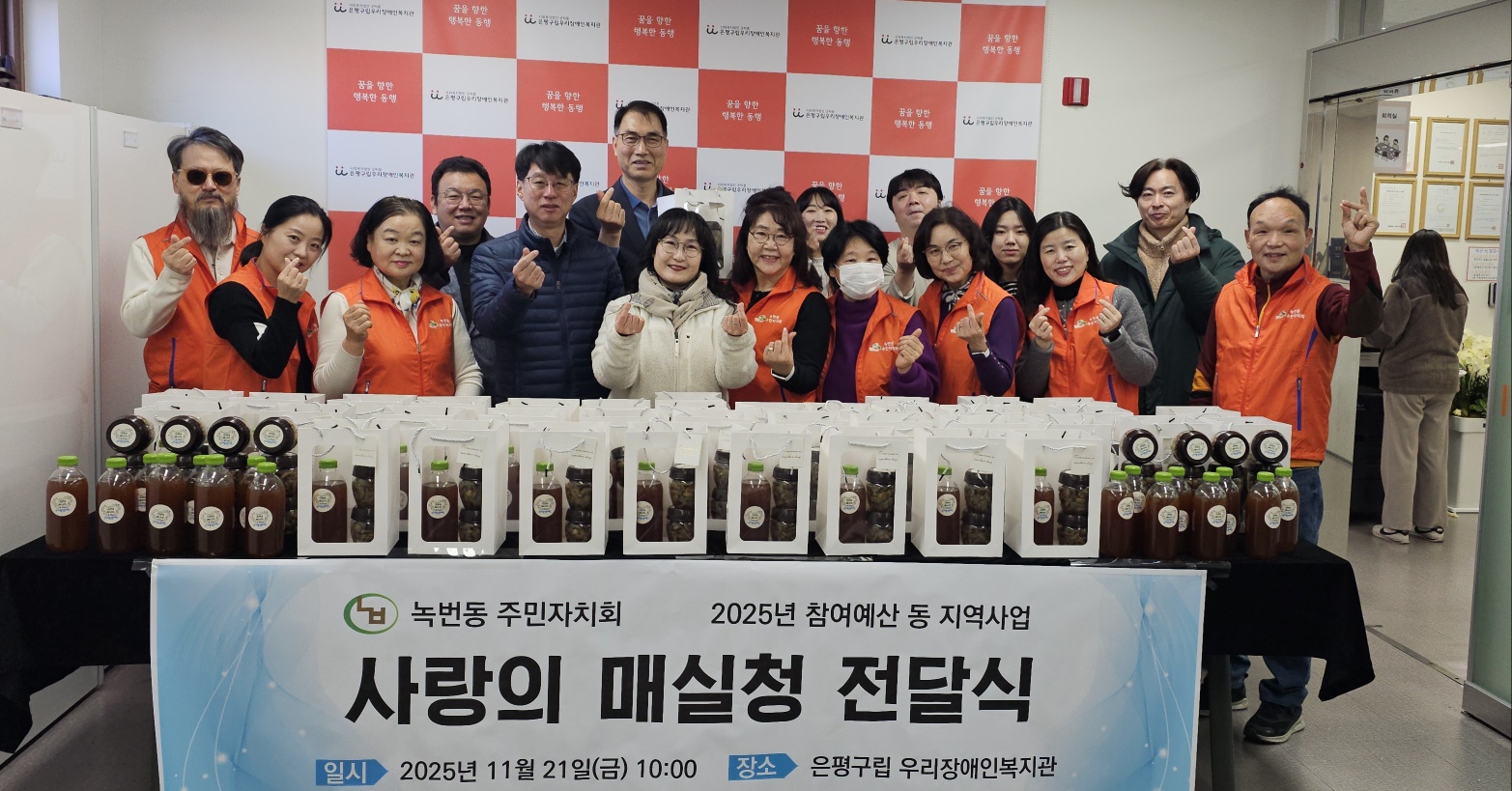 이후 주민자치회 위원들이 직접 매실청을 담그고, 숙성하는 과정을 거쳐 거른뒤, 은평구 가족센터와 우리장애인복지관을 통해 시설 이용자, 한부모 및 다문화 가정 등에 매실청을 나눔할 수 있도록 전달하였습니다.