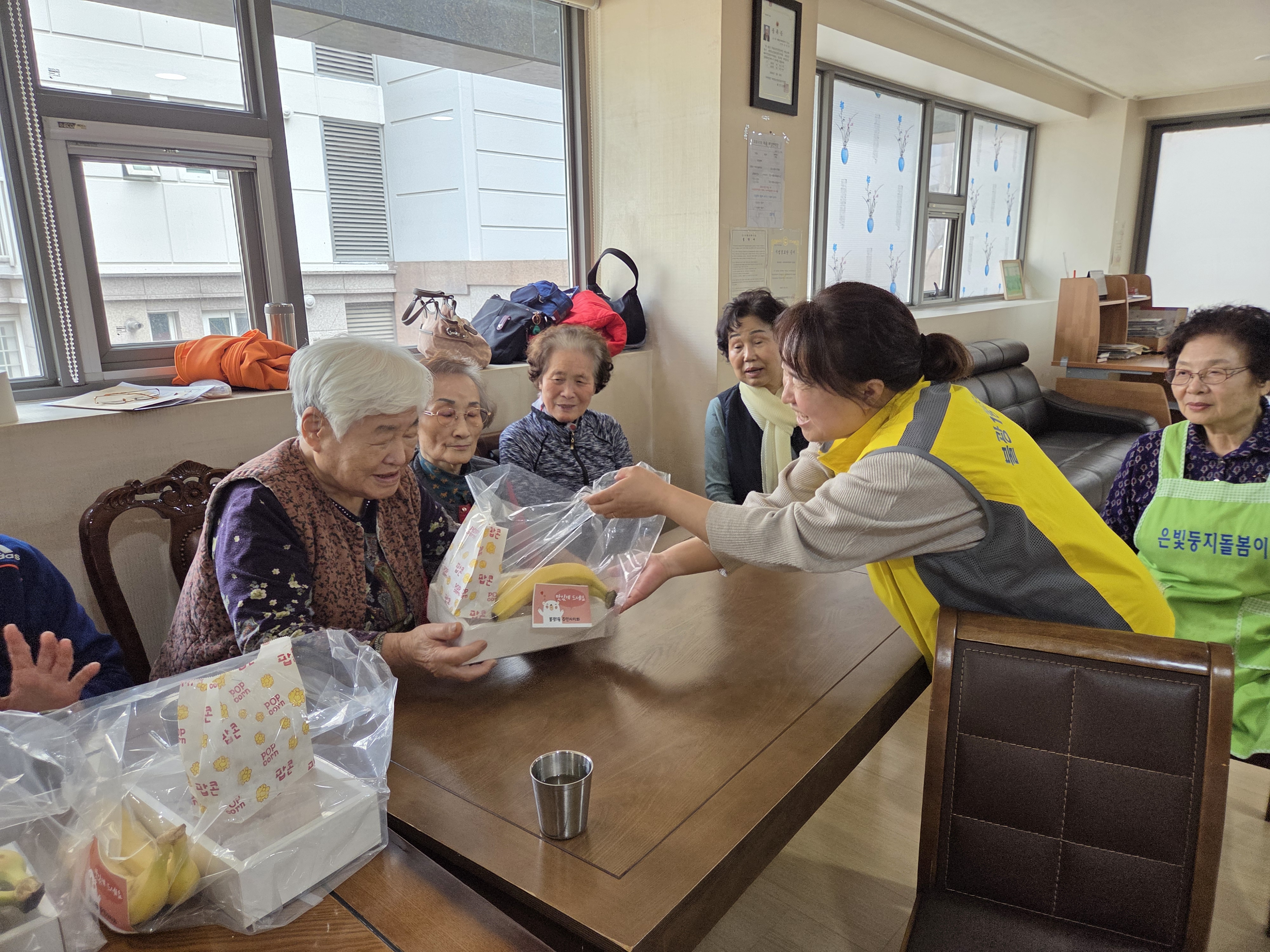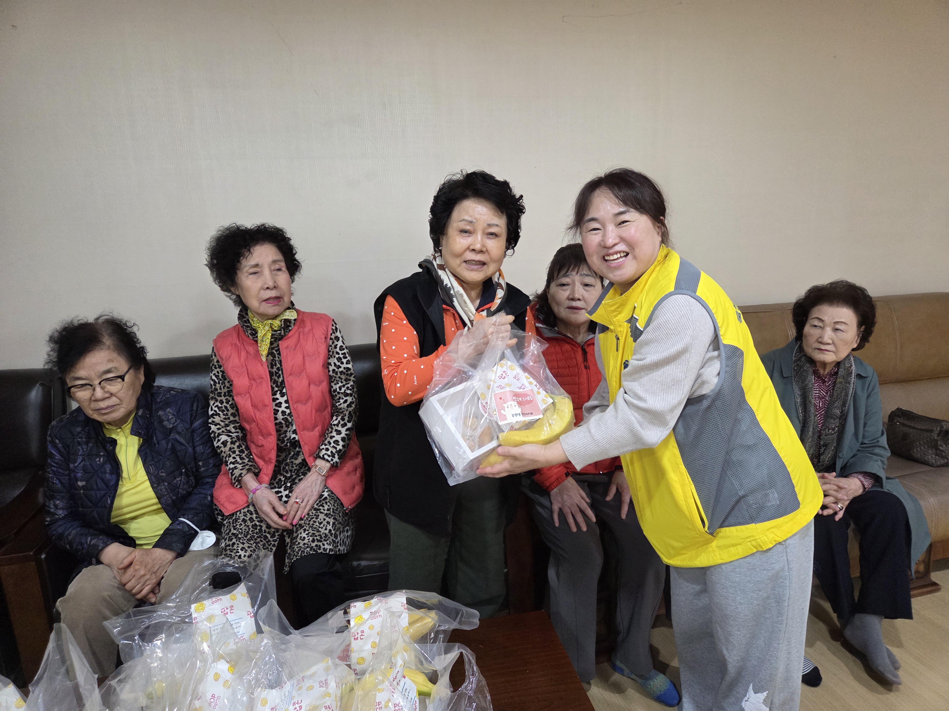 장미공원길 북한산래미안 경로당 1차화 2차에 방문하여 휘낭시에 나눔을 하고 왔습니다.