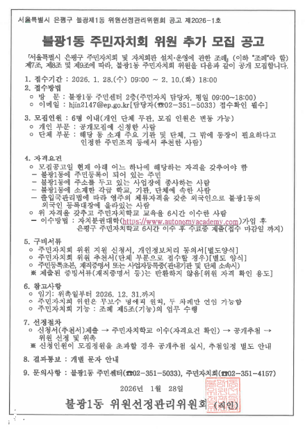 - 불광 1동 주민자치회 결원에 따른 위원 추가 모집합니다 -