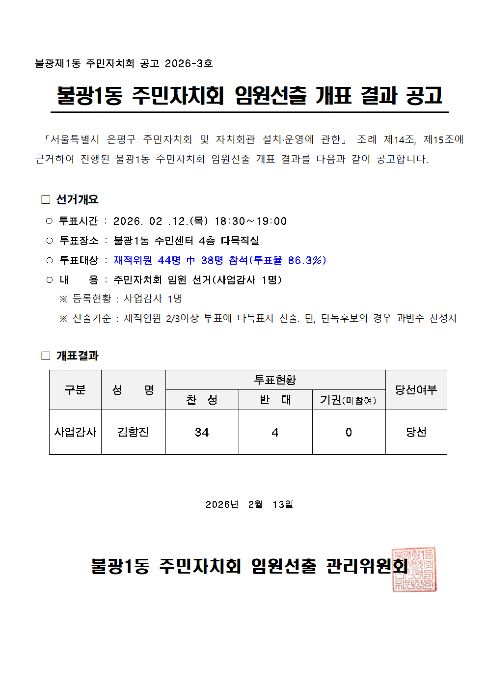 사업감사 선거 및 당선인 공고