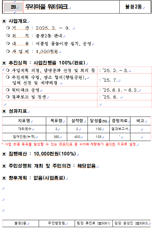 [문화체육] 2025. 참여예산 - 우리마을 워터파크