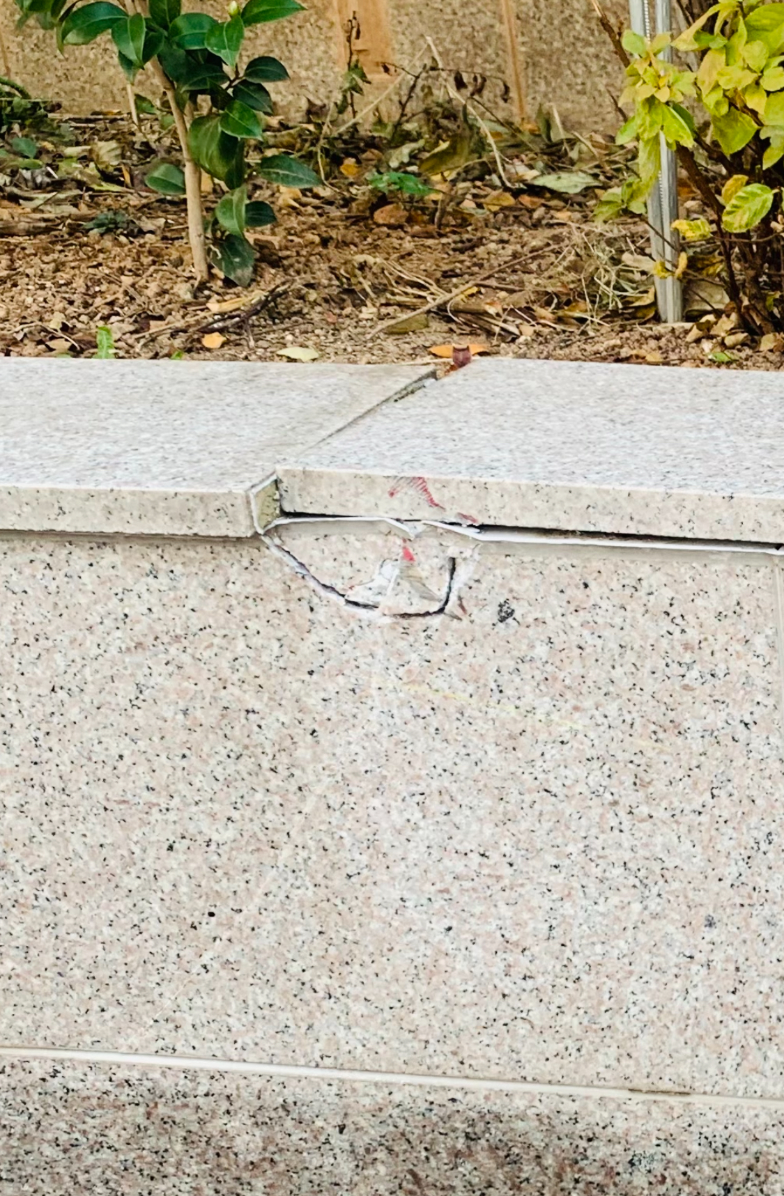 최근에 저희 집 앞 화단 대리석을 오토바이(추정)가 야간에 들이받고 파손시키고 도주한 사건이 일어났습니다.
