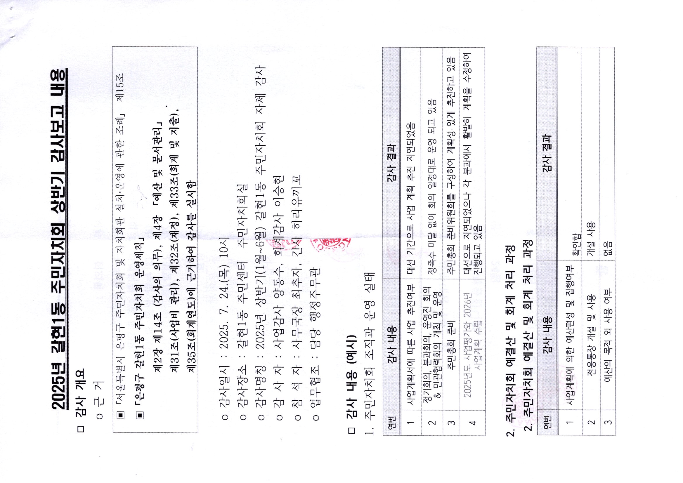 2025 상반기 갈현1동 주민자치회 정기감사 실시