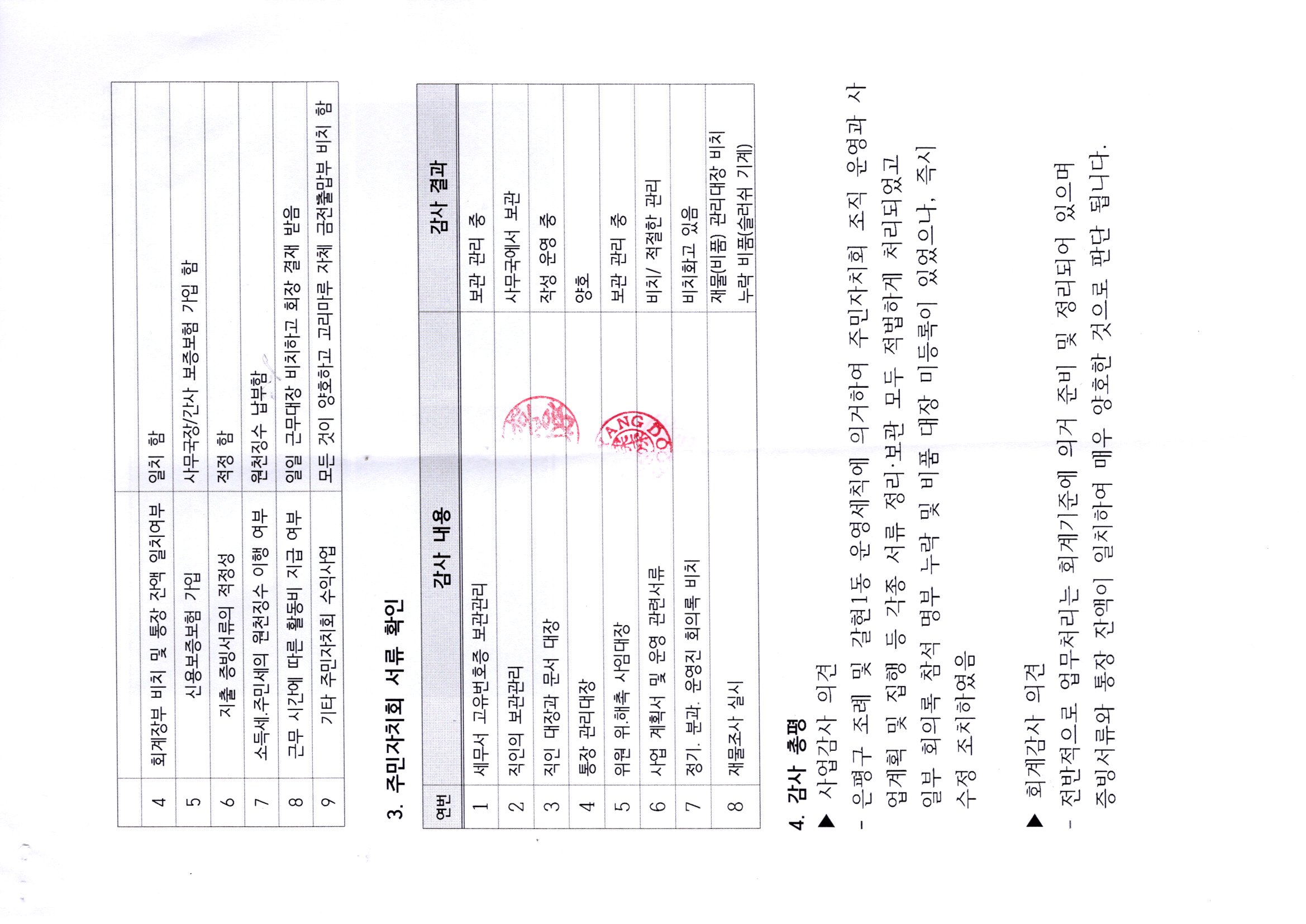 감사자 : 사업감사 양동수, 회계감사 이승현