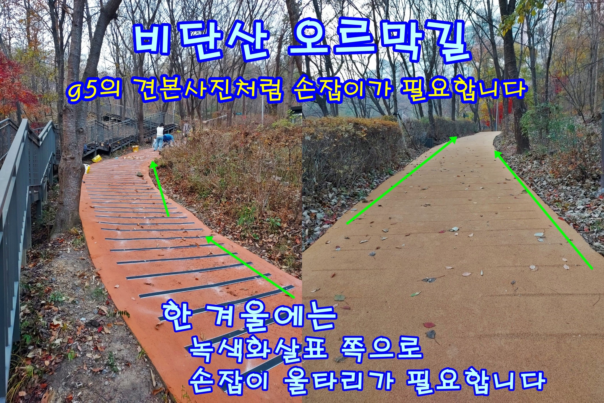 그동안 새 계단과 보강재 설치로 산길 오르내리는게많이 편해졌지만 계단이 없는 곳은 아직 위험합니다 그런 곳까지 빠짐없이 손잡이 울타리를 설치해 주시면 감사하겠습니다 -