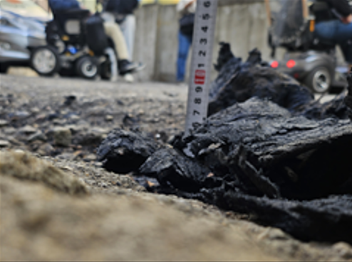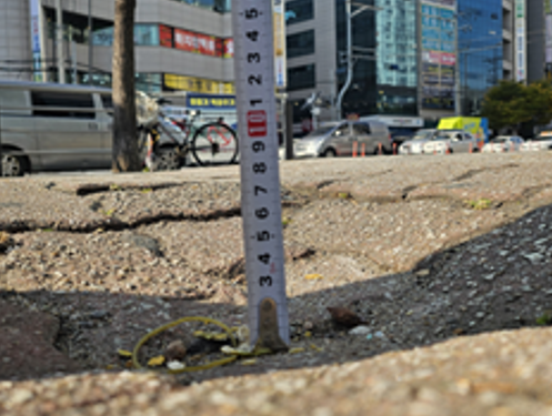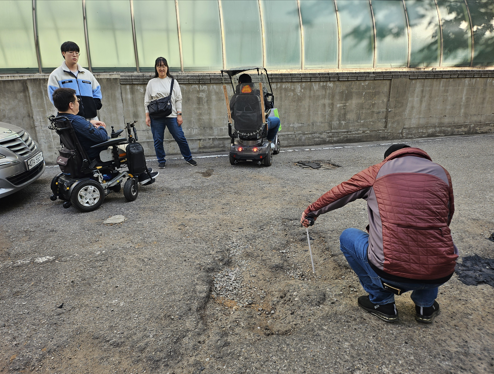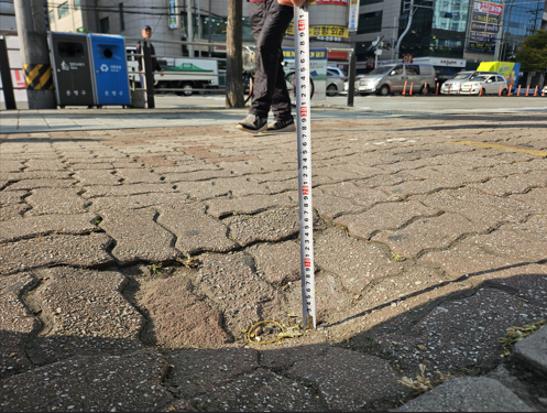 - 줄자룰 활용하여 노면 단차·포장불량 등 실제 물리적 상태 확인(단차, 요철, 침하, 경사 등 세부 항목 기록)