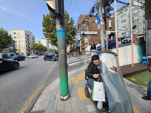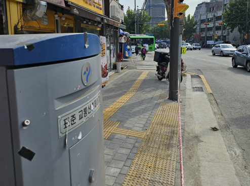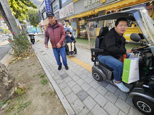 전동보장구는 겨우 지나갈 수 있음 전동휠체어는 지나갈 수 없어서 도로를 우회해서 통해야함 유아차, 어르신 핸드캐리 휠체어 활용 불가 예상