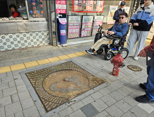 전동휠체어 바퀴가 걸림 전동스쿠터 이용 시 심하게 덜컹거리며 위험함 → 자전거, 킥보드, 유아차가 다닐 경우에도 위험