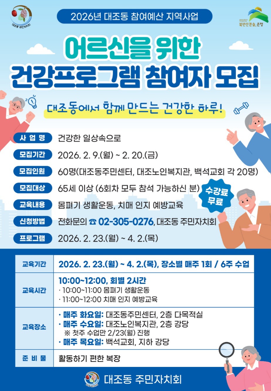 2026년 대조동 참여예산 지역사업 건강한 일상속으로