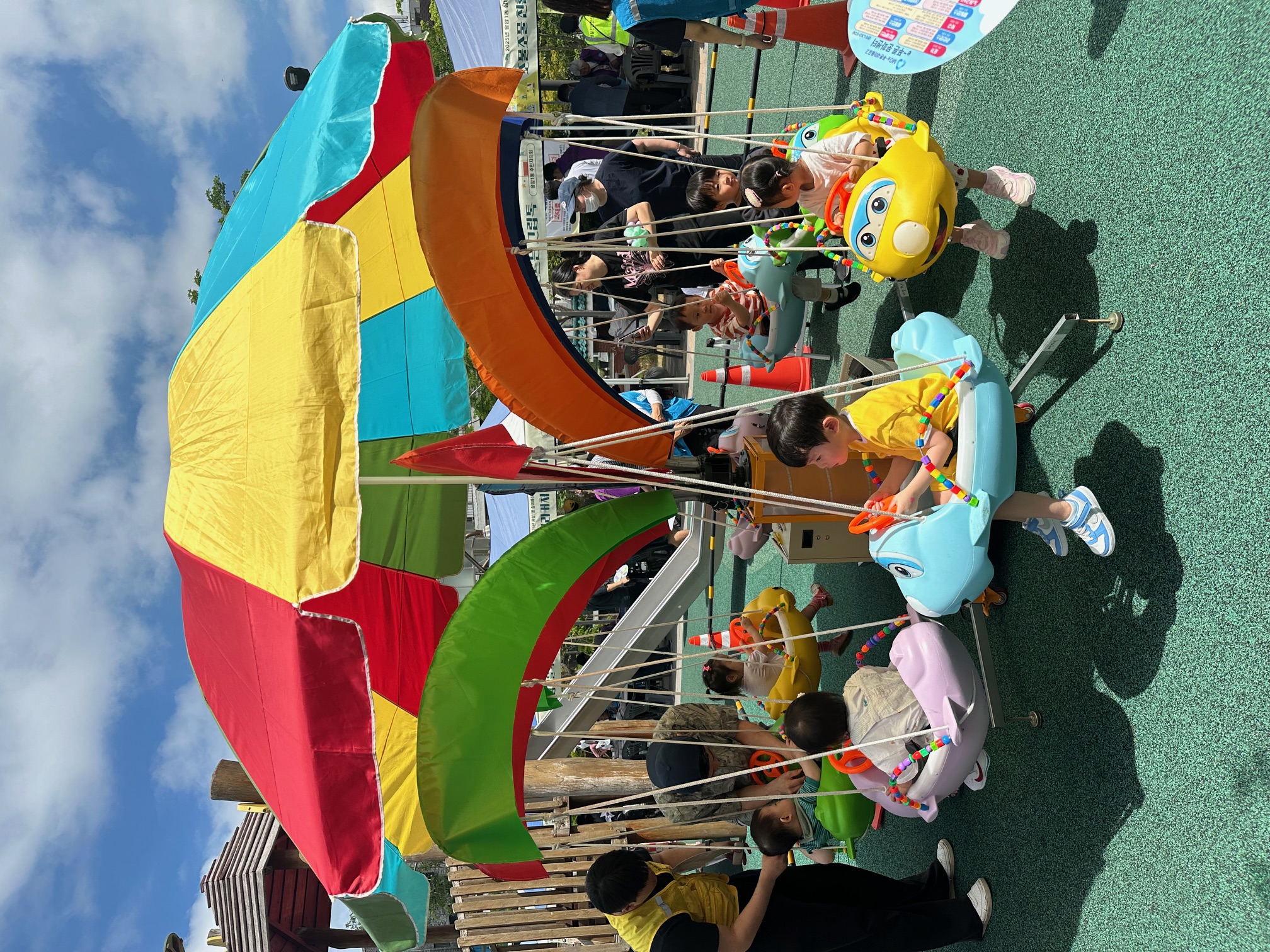 아이들이 즐길 수 있는 에어바운스, 바람개비 등 다양한 놀이기구와 민속놀이 체험 뿐만 아니라,다양한 물품을 판매하는 바자회와 친환경 체험부스도 있어 많은 가족들이 즐거운 시간을 보냈습니다.