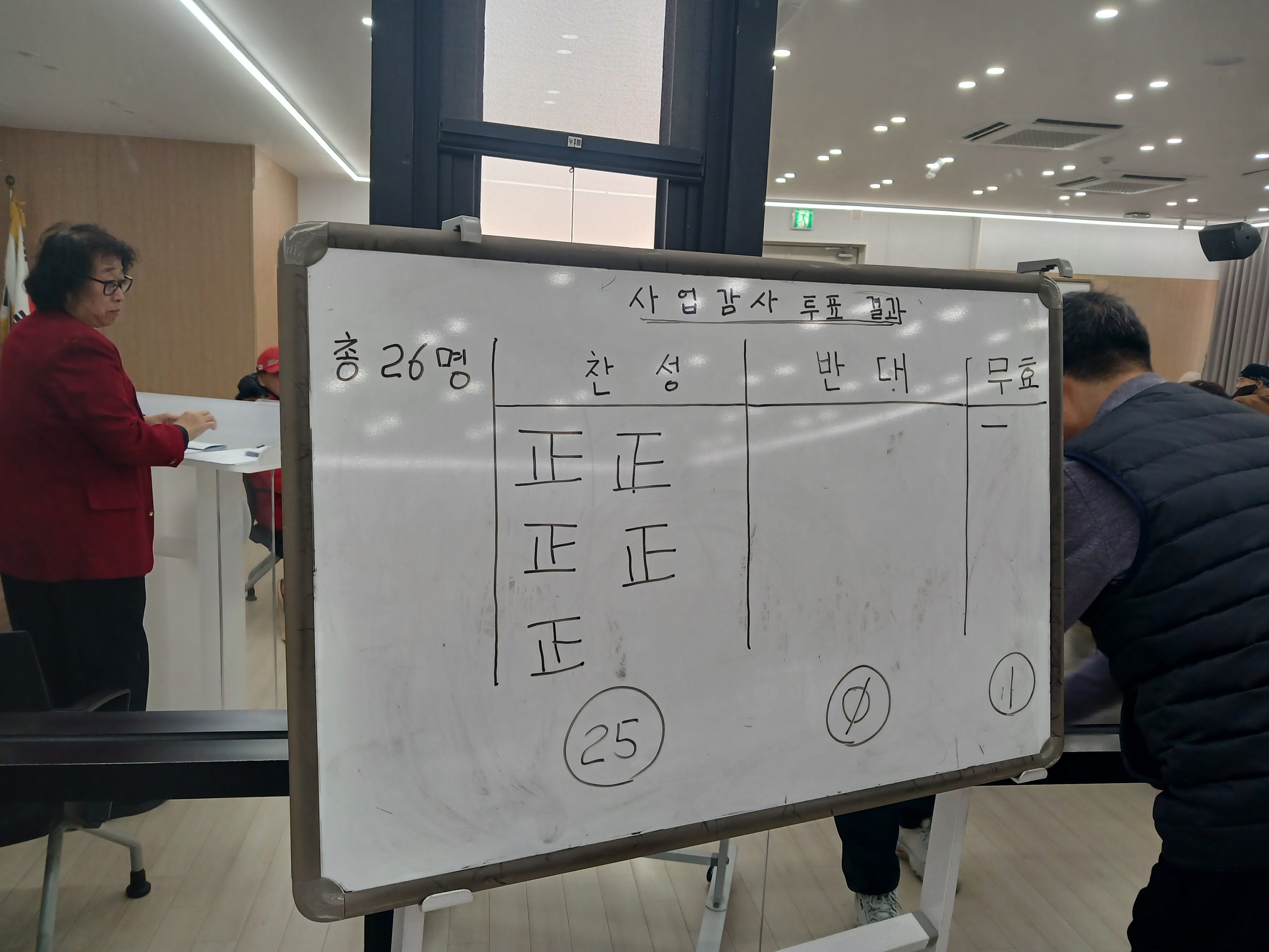 5.투표결과 :  박명동(단일후보) 당선(찬성25표,반대0표,무효1표,기권1표)