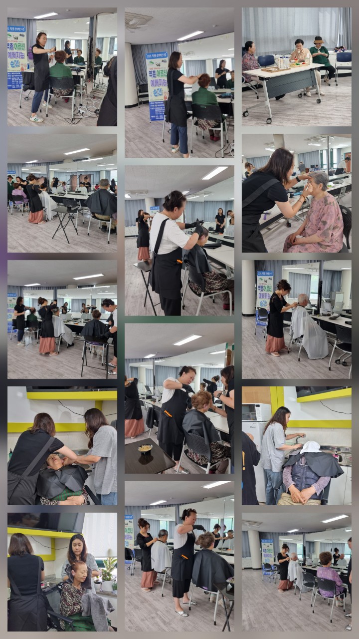 오늘 복지분과에서는 위원님들이 컷트와 염색 ,메이크업과 드리이를 해드렸습니다.