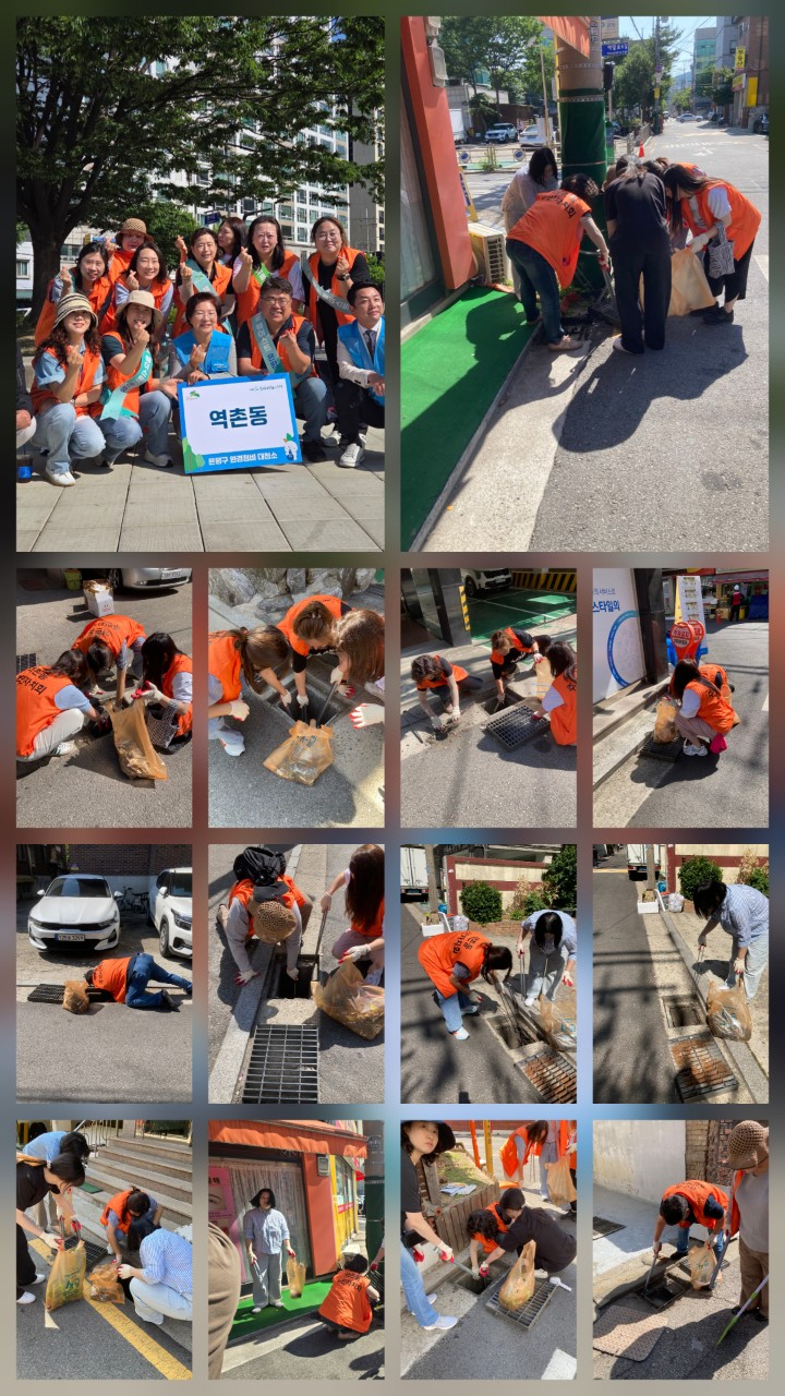 빗물받이는 빗물과 함께 유입되는 낙엽. 쓰레기, 훍 등이 쌓이기 쉬워 침수나 약취 해충발생 등의 문제가 생기지 않도록 하기위해 행정분들과 역촌동 주민자치위원님들께서 함께 하셨습니다.