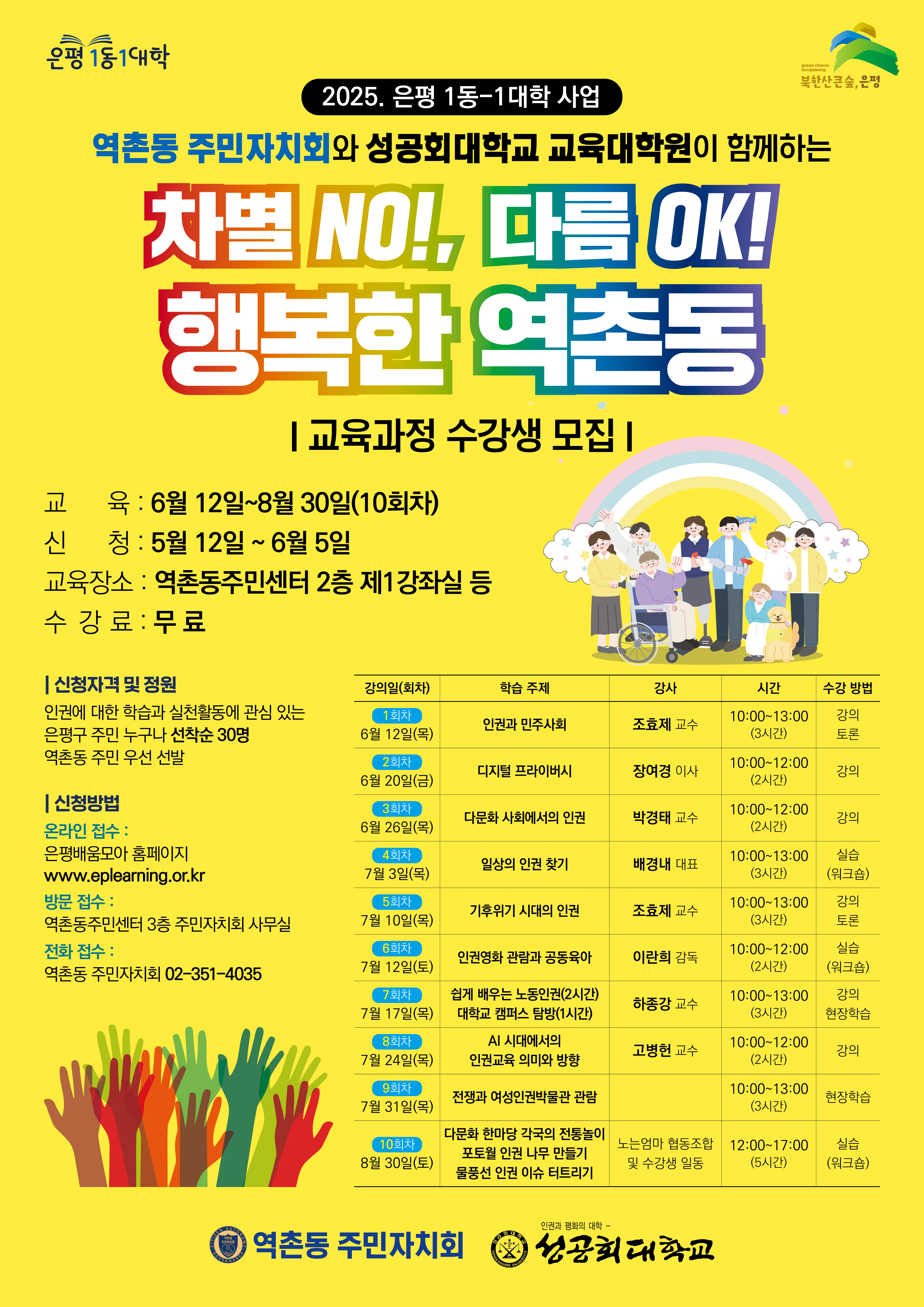 (성인 대상 인권교육) 차별 NO! 다름 OK! 행복한 역촌동 참여자를 모집합니다.