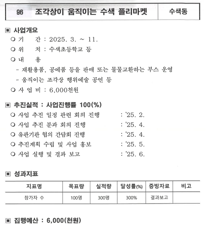[주민참여] 2025년 수색동 참여예산 사업[조각상이 움직이는 수색 플리마켓]