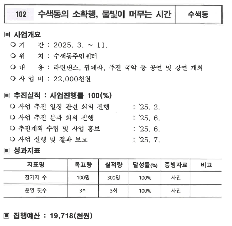 2025년 참여예산 동지역사업<수색동의 소확행> 추진완료