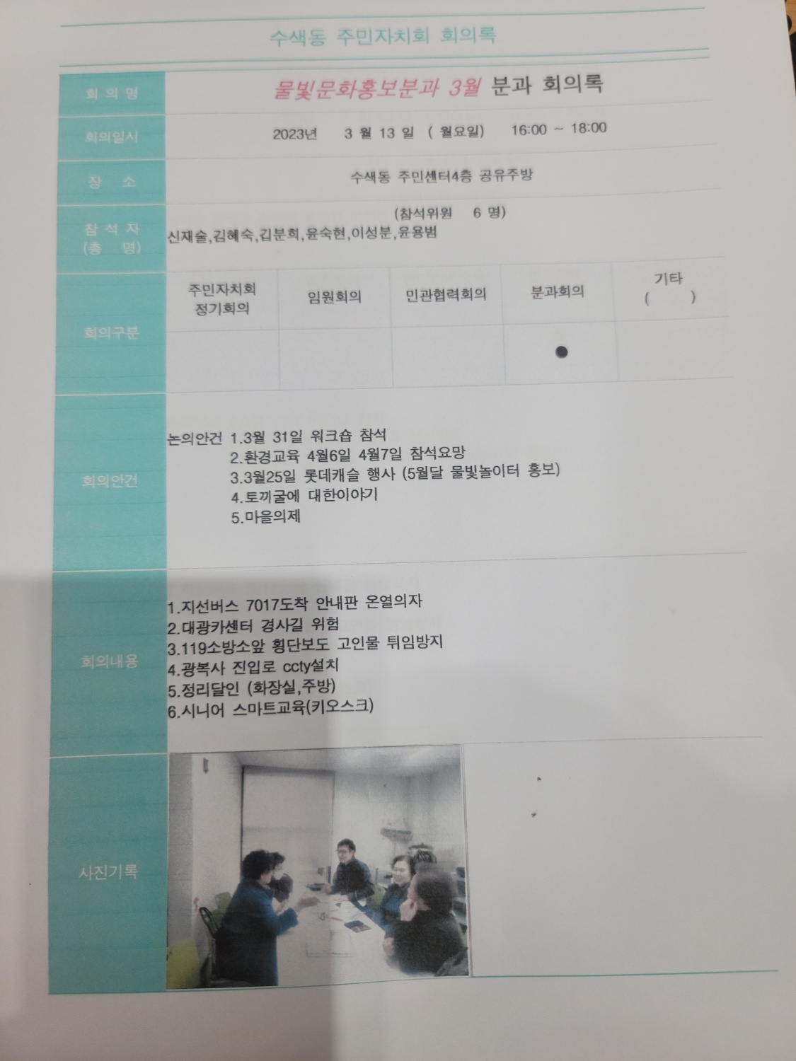 참석자- 신재술, 김혜숙, 김분희, 윤숙현, 이성분, 윤용범