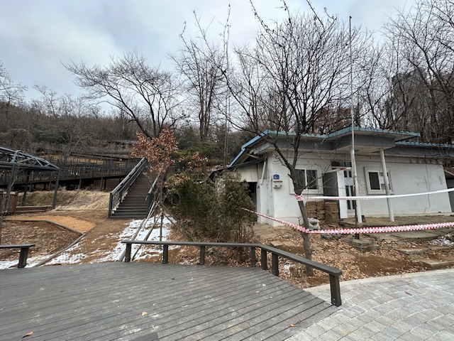 시립 은평실버케어센터 주변 무장애숲길 조성 관련, 공원 입구에 방치된 무허가 건물이 있습니다(서부교육지원청 소유 토지로 문의 결과 토지 위 무허가 건물이라고 함).