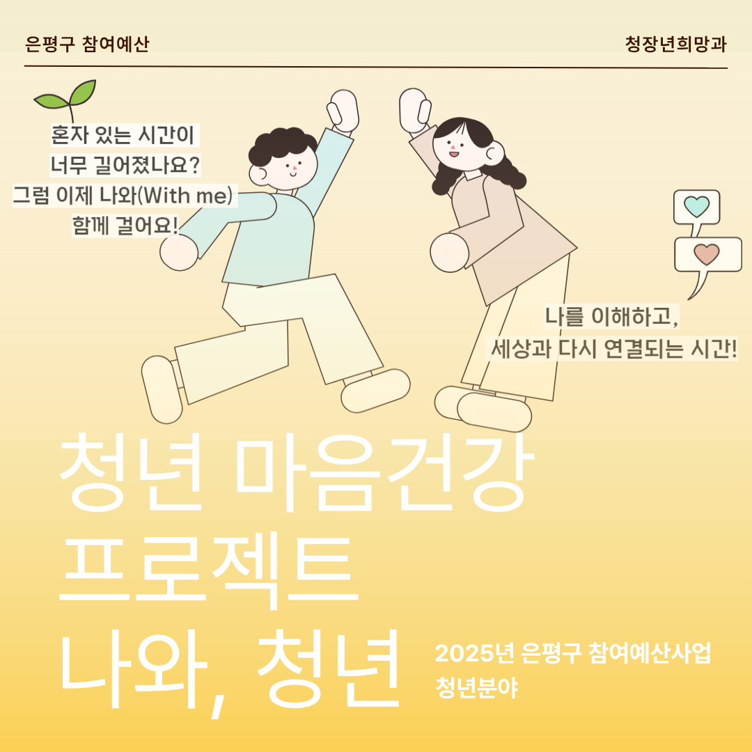 2025년 은평구 참여예산 사업으로 선정된 ‘청년 마음건강 프로젝트 나와(with me), 청년’은