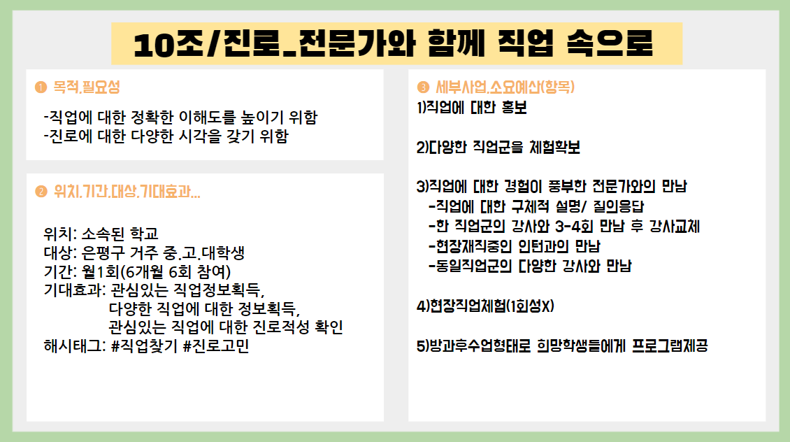 청소년들이 평소에 진로에 대해 탐색 할 수 있는 기회가 잘 부족한데 좋은 기획인거 같습니다!
