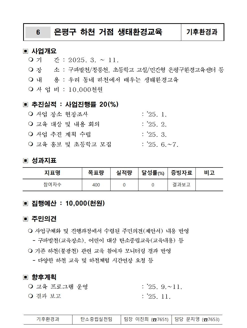 [주거환경] 6. 은평구 하천 거점 생태환경교육