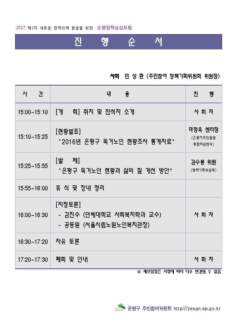 - 주 최 : 은평구 주민참여 정책기획시민위원회