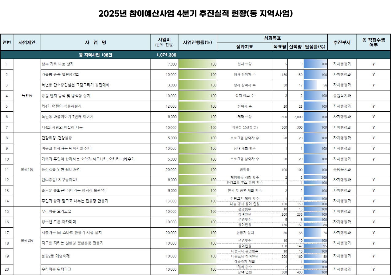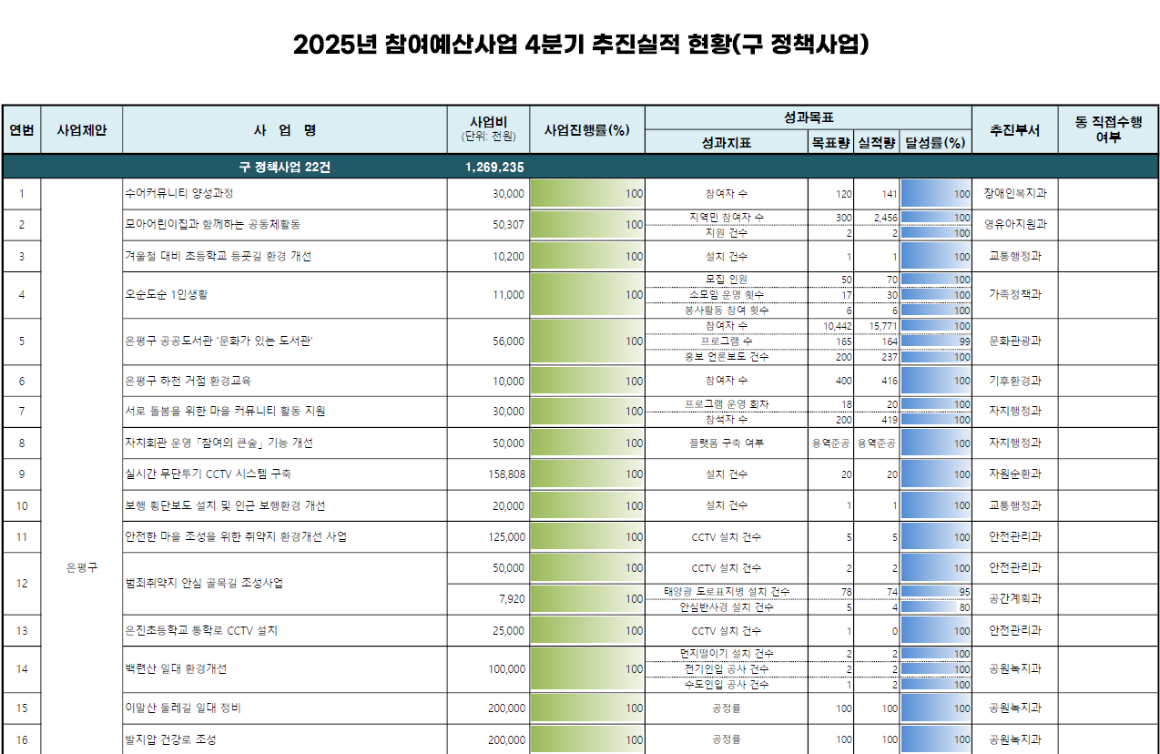 2025년도 은평구 주민참여예산사업 추진실적 (4분기)