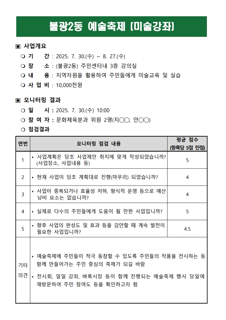[2025 모니터링 1차 결과보고서] ② 불광2동 예술축제 (미술강좌)