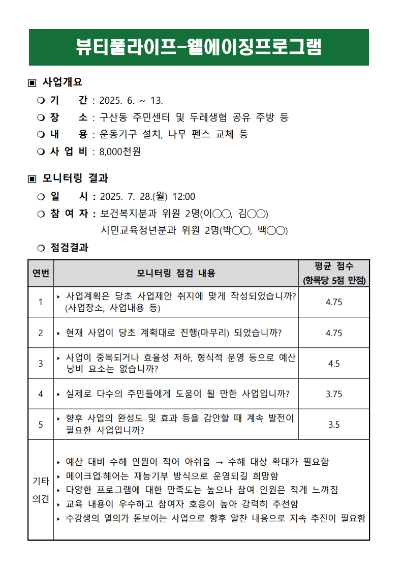 [2025 모니터링 1차 결과보고서] ④ 구산동 뷰티풀라이프 (웰에이징프로그램)