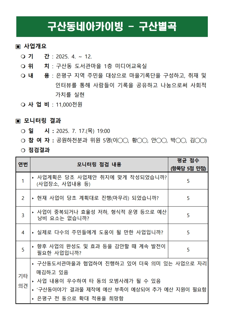 [2025 모니터링 1차 결과보고서] ⑤ 구산동네아카이빙 (구산별곡)