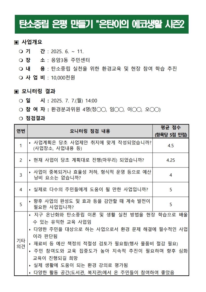 [2025 모니터링 1차 결과보고서] ⑦ 탄소중립 은평만들기(은탄이의 에코 생활 시즌2)