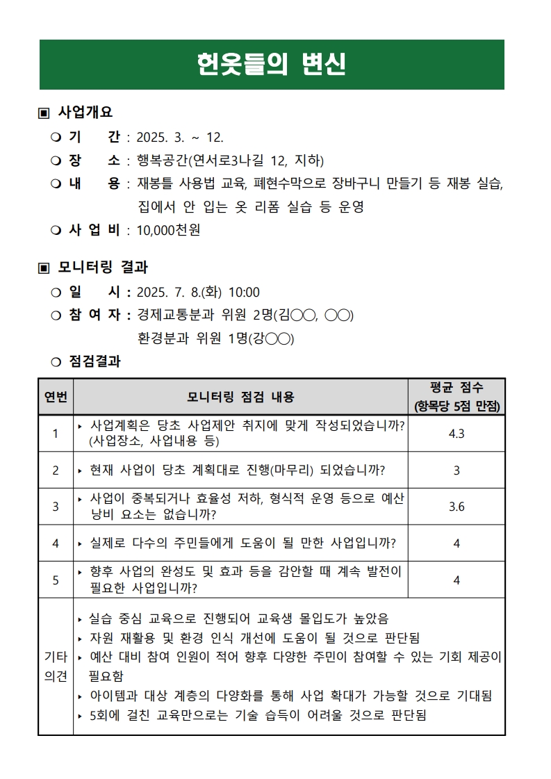 [2025 모니터링 1차 결과보고서] ⑧ 역촌동 헌옷들의 변신
