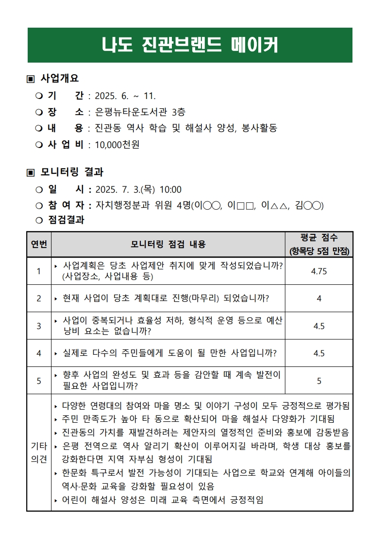 [2025 모니터링 1차 결과보고서] ⑫ 나도 진관브랜드 메이커