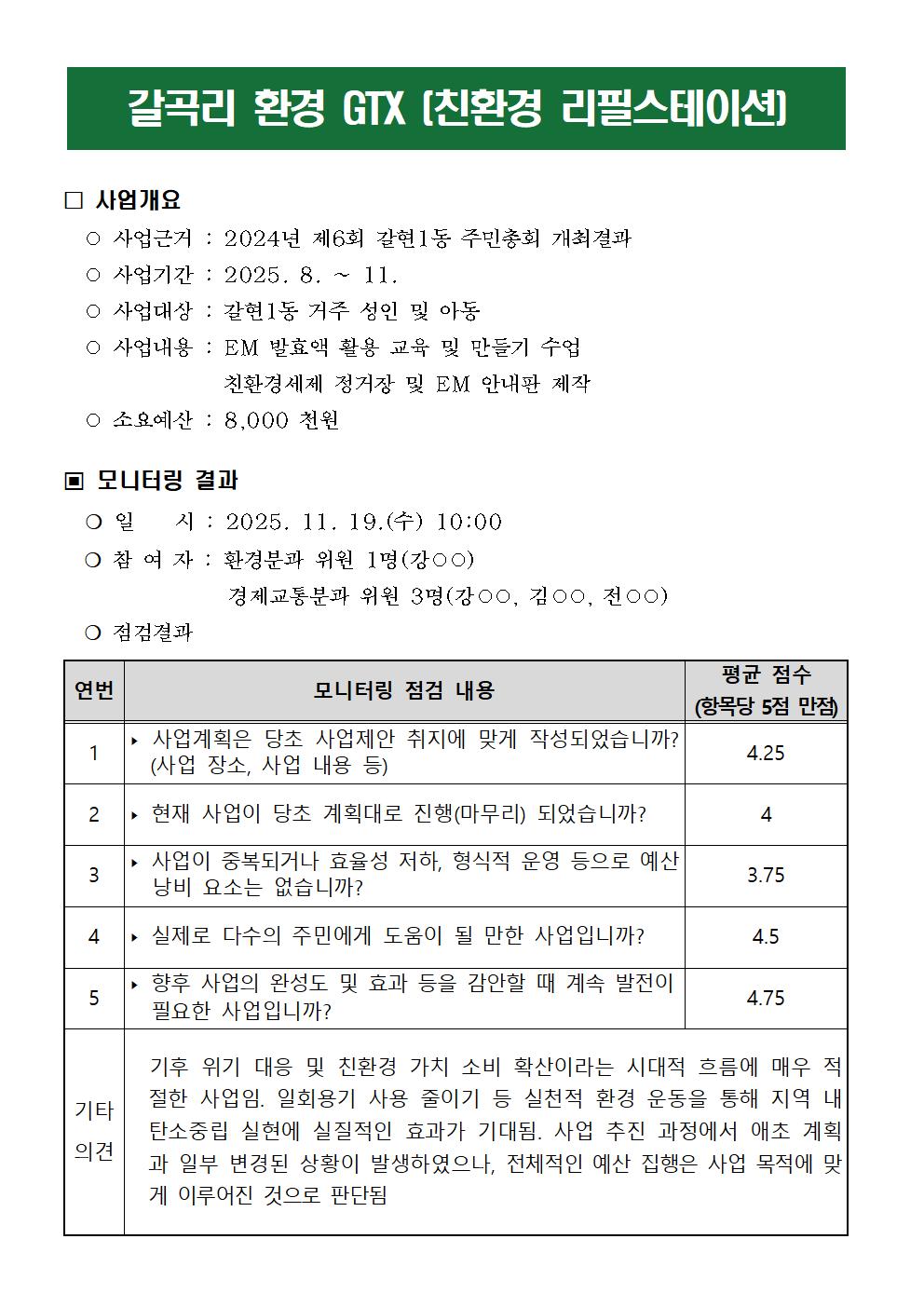 [2025 모니터링 2차 결과보고서] 프로그램 ⑤갈곡리 ‘환경 GTX’ (친환경 리필 스테이션)