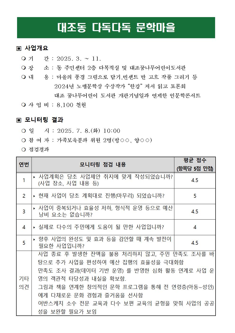 [2025 모니터링 2차 결과보고서] 프로그램 ⑧대조동 다독다독 문학마을