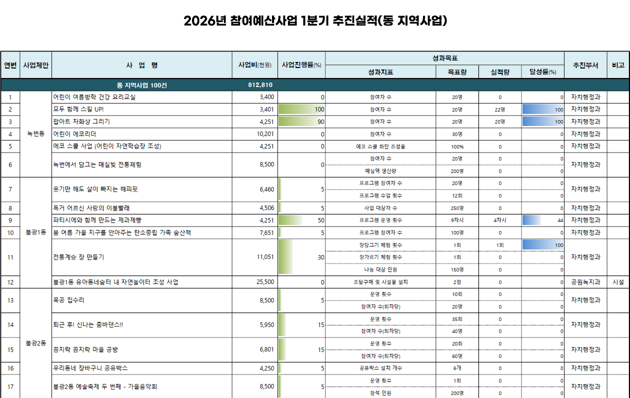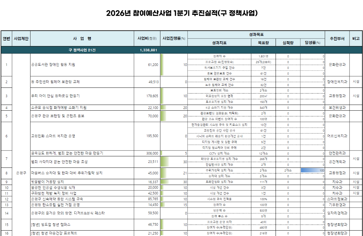 2026년도 은평구 주민참여예산사업 추진실적 (1분기)