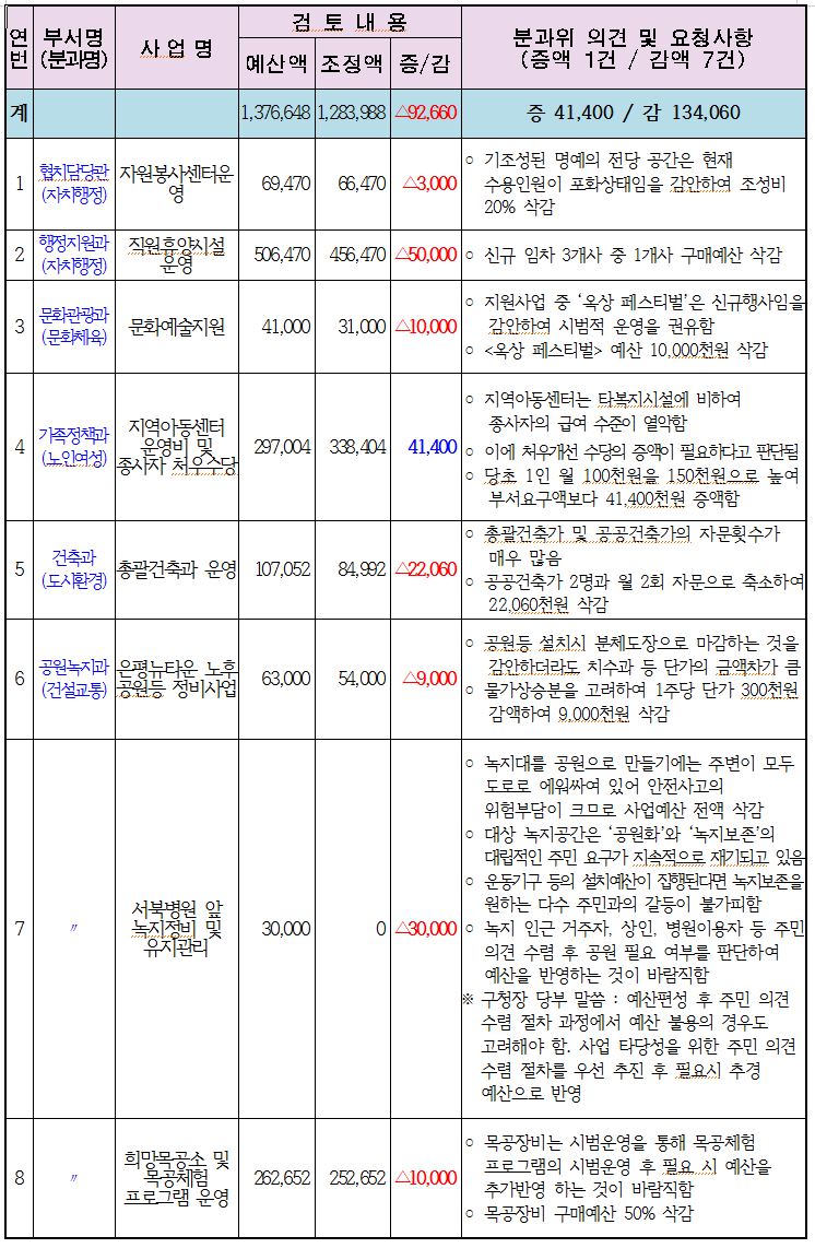 가. 2020. 본예산 편성 참여예산위원회 심의 결과