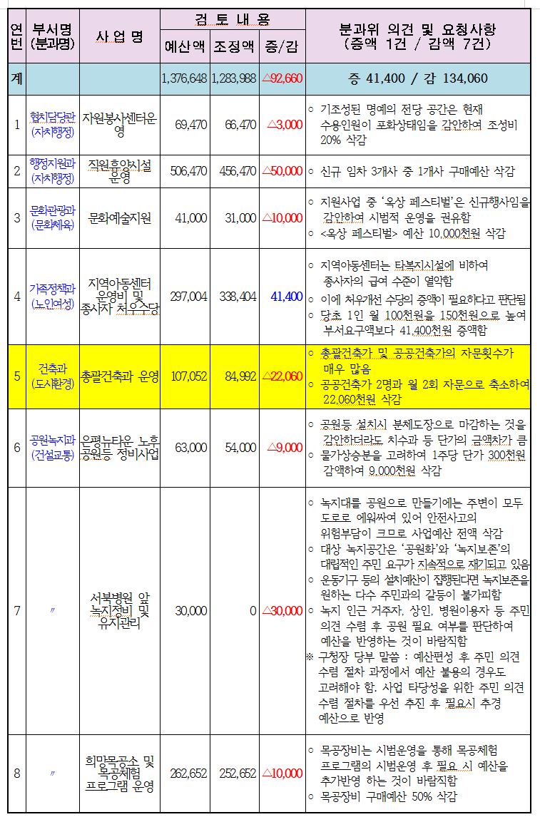 가. 2020. 본예산 편성 참여예산위원회 심의 결과