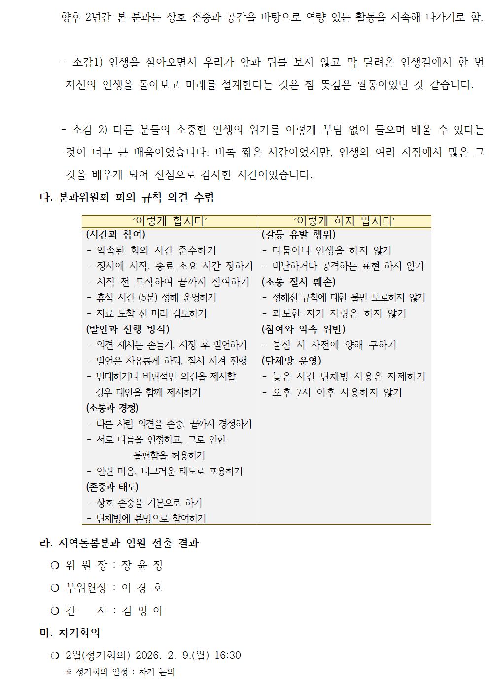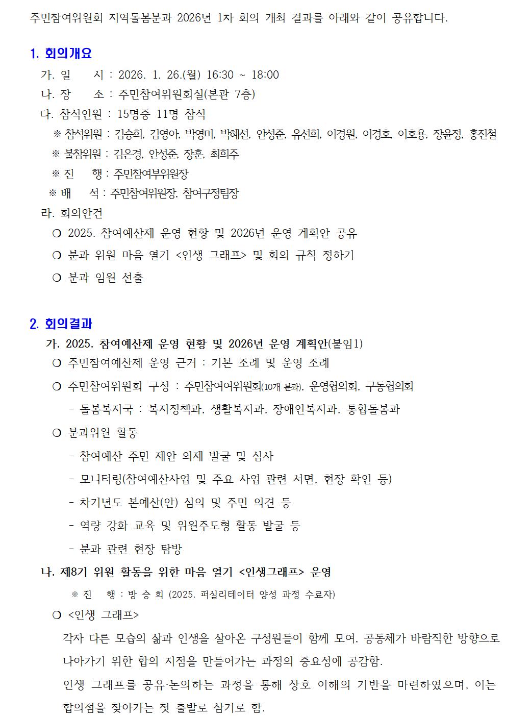 지역돌봄분과 2026년 1차 회의 개최 결과