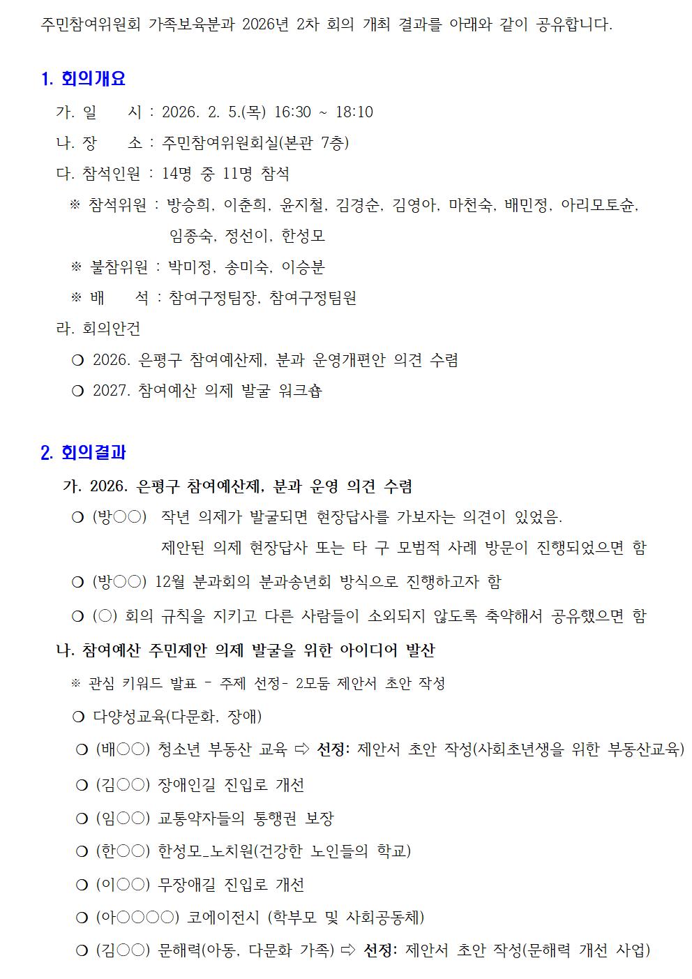 가족보육분과 2026년 2차 회의 개최 결과