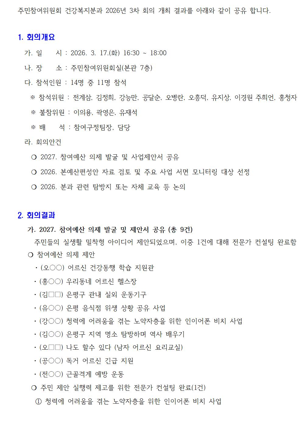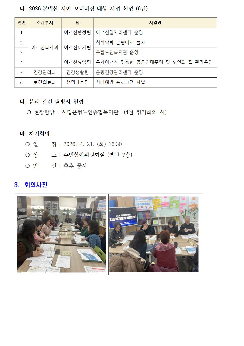 건강복지분과 2026년 3차 회의 개최 결과